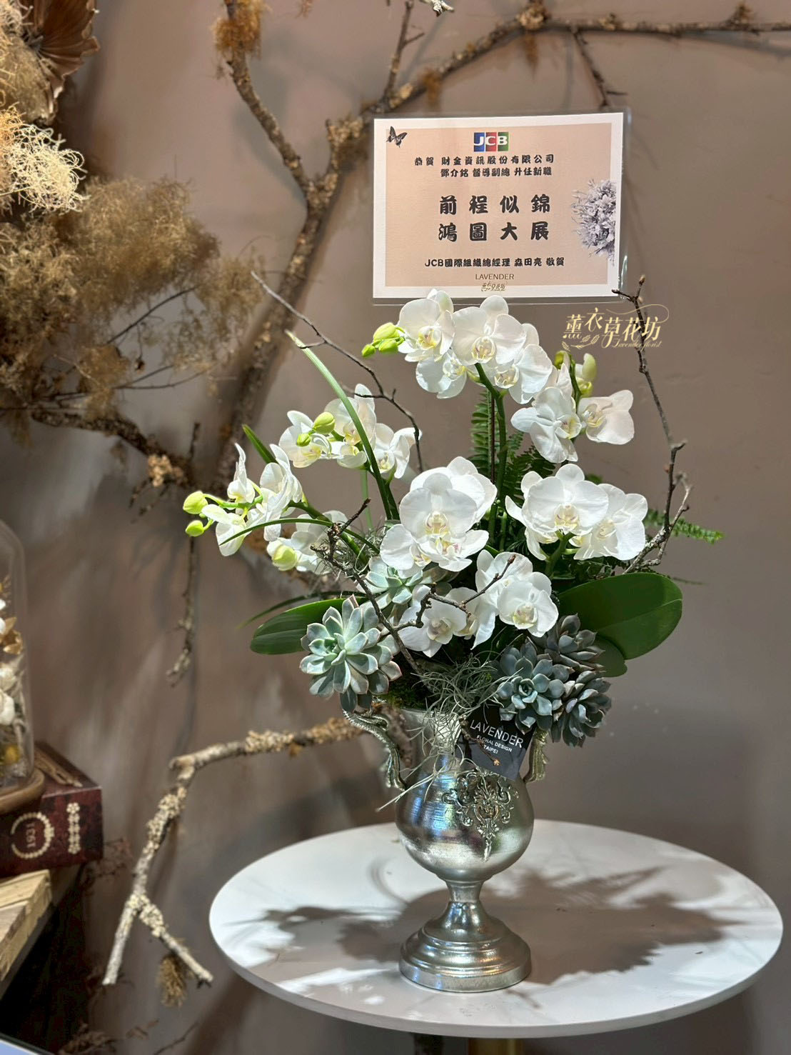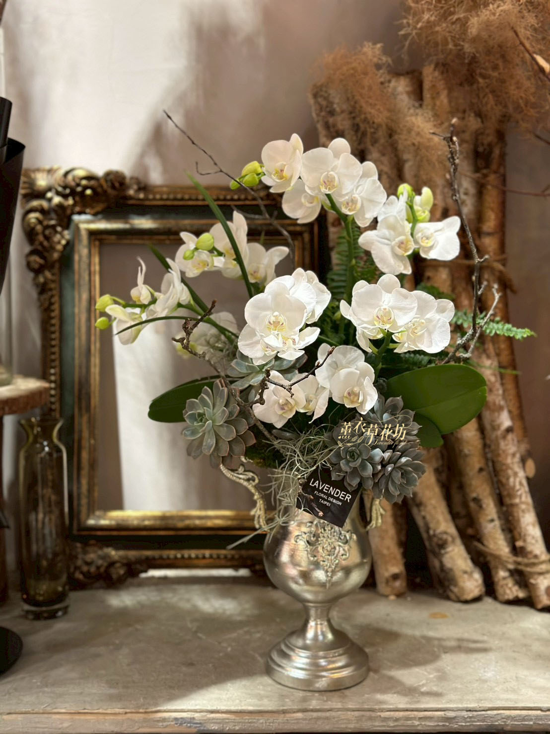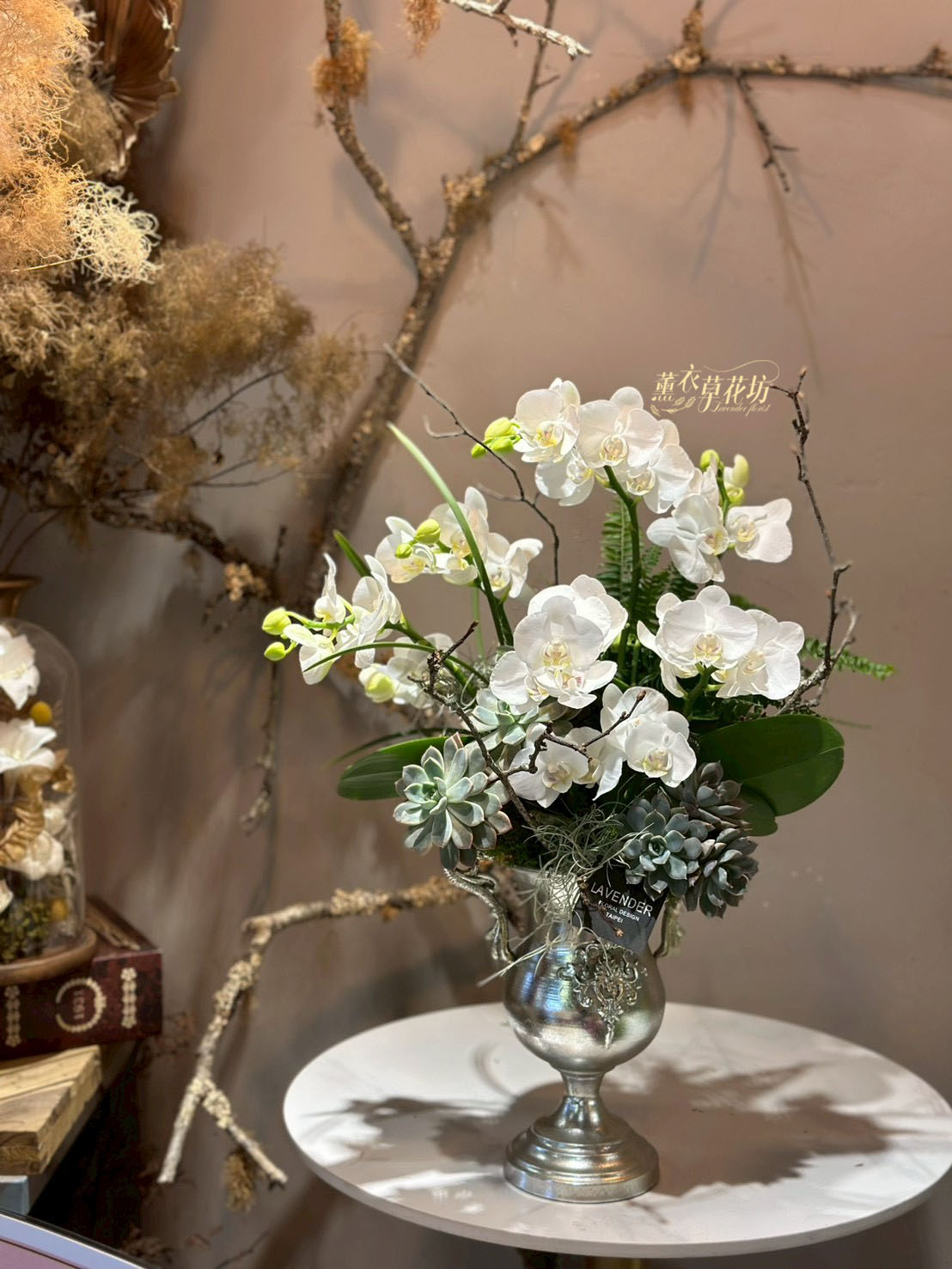 【品名】迷你蝴蝶蘭(當季類似款美一盆做出來都無法一模一樣唷)&多肉植物/復古盆器~可以更改色系唷.請在備註欄註記.