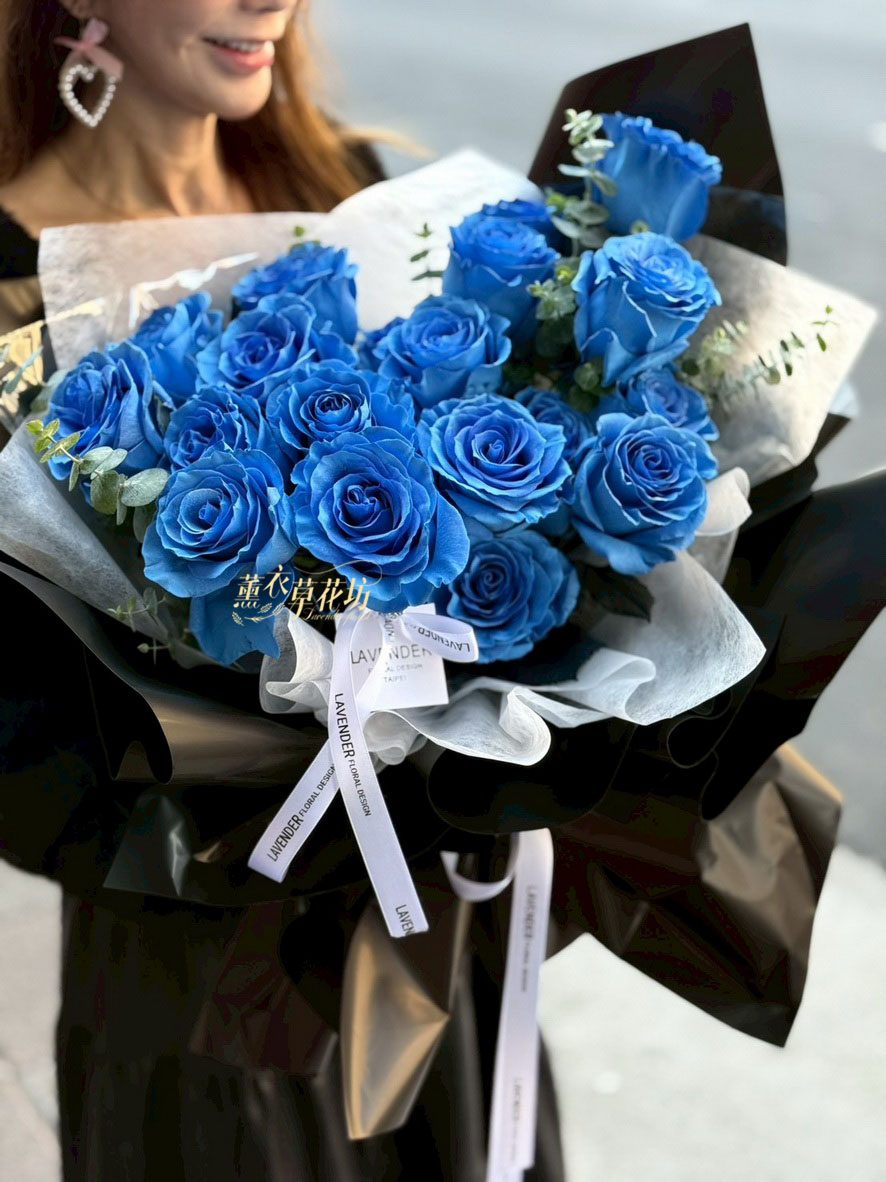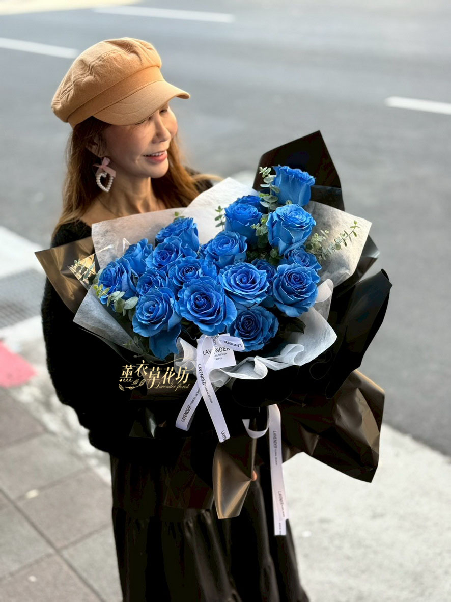 【品名】進口~水藍天空藍-玫瑰-花束設計-須提前14天預訂-下單請先詢問.