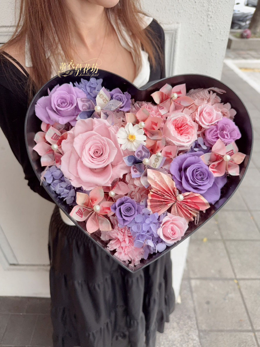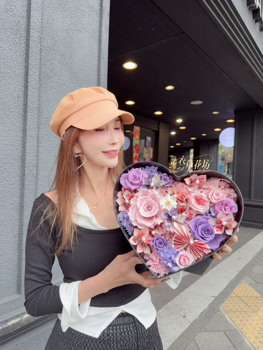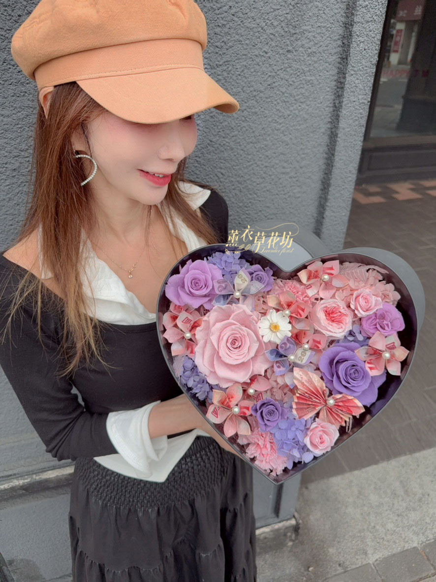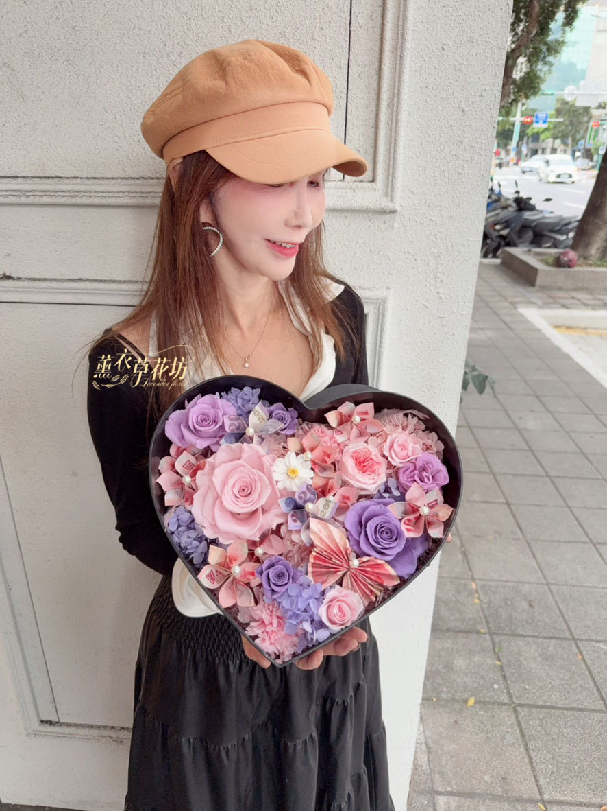【品名】愛心~永生花~花盒(內涵現金5000)