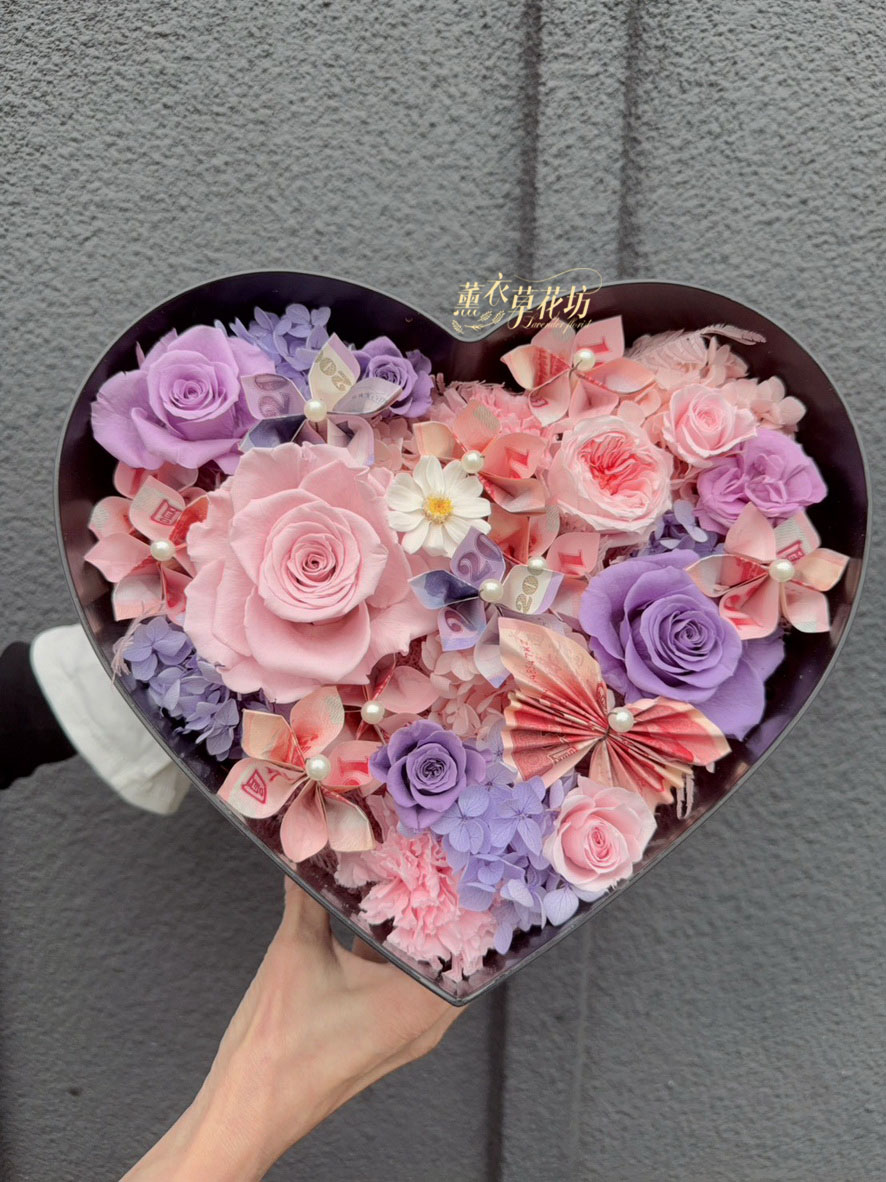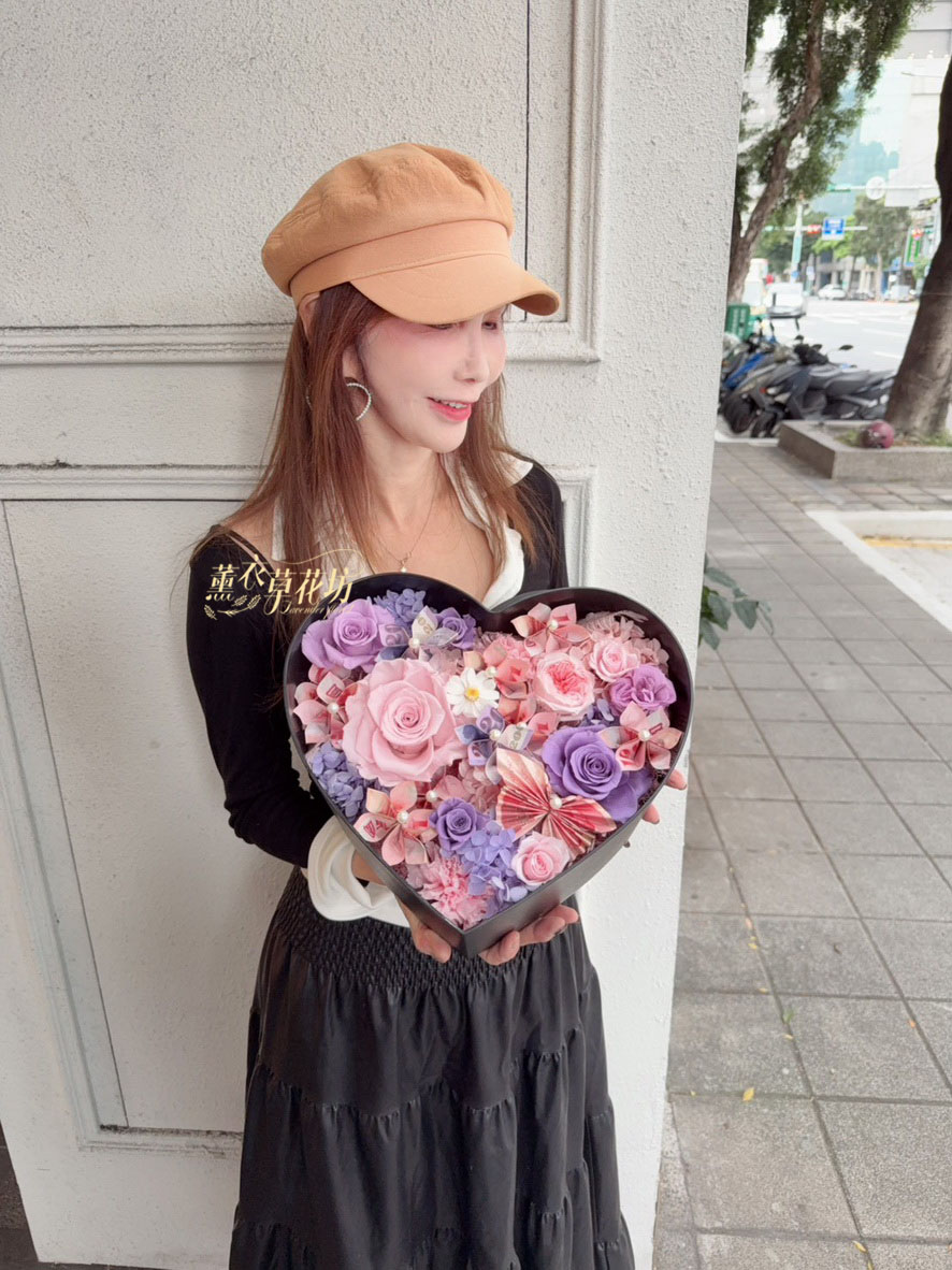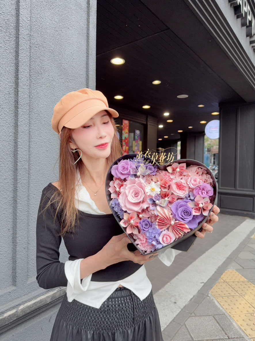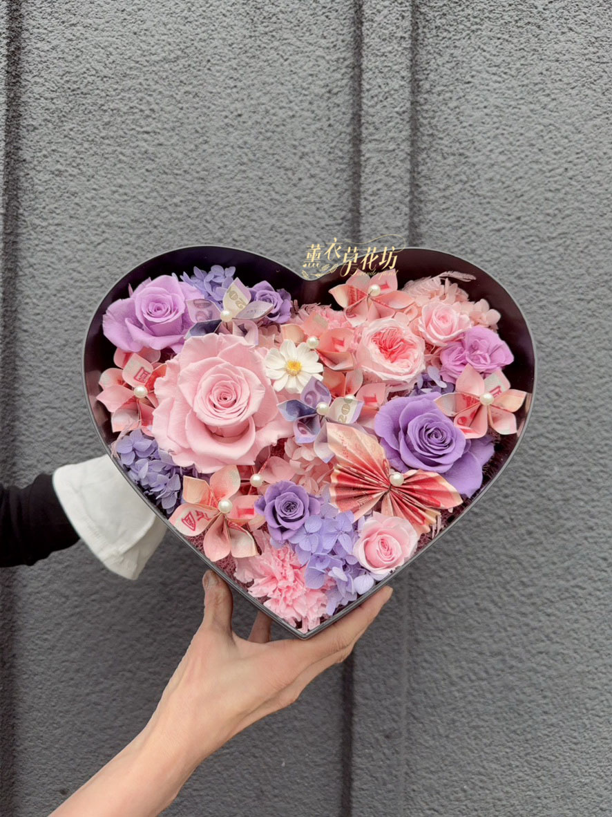 【品名】愛心~永生花~花盒(內涵現金5000)