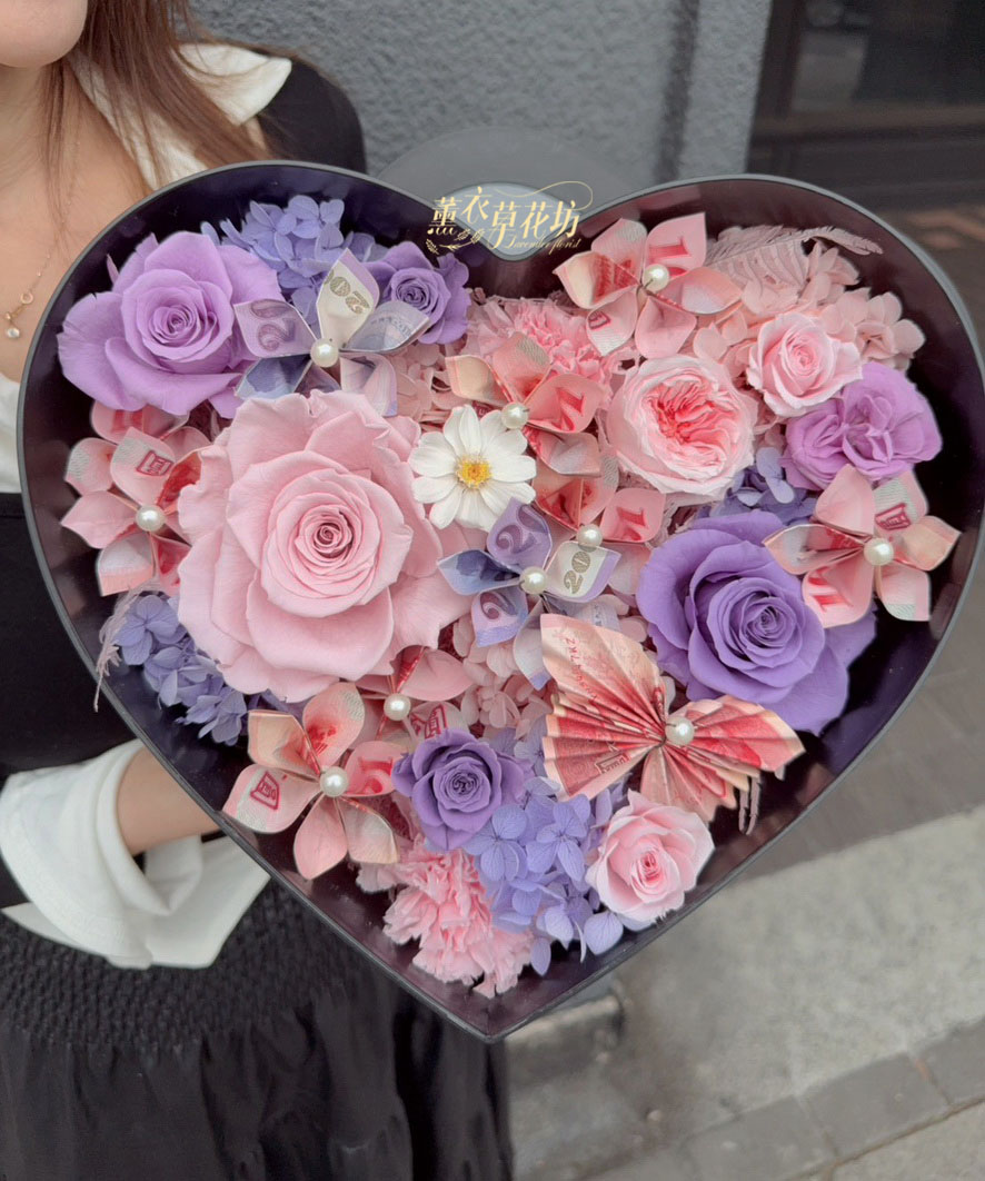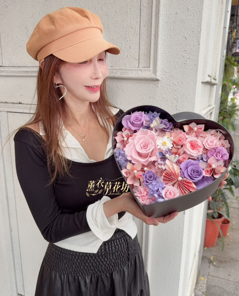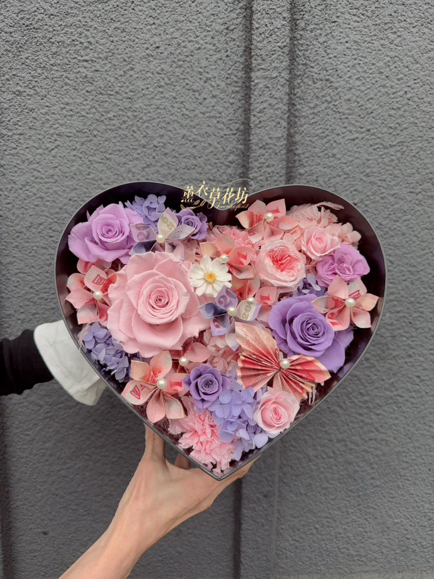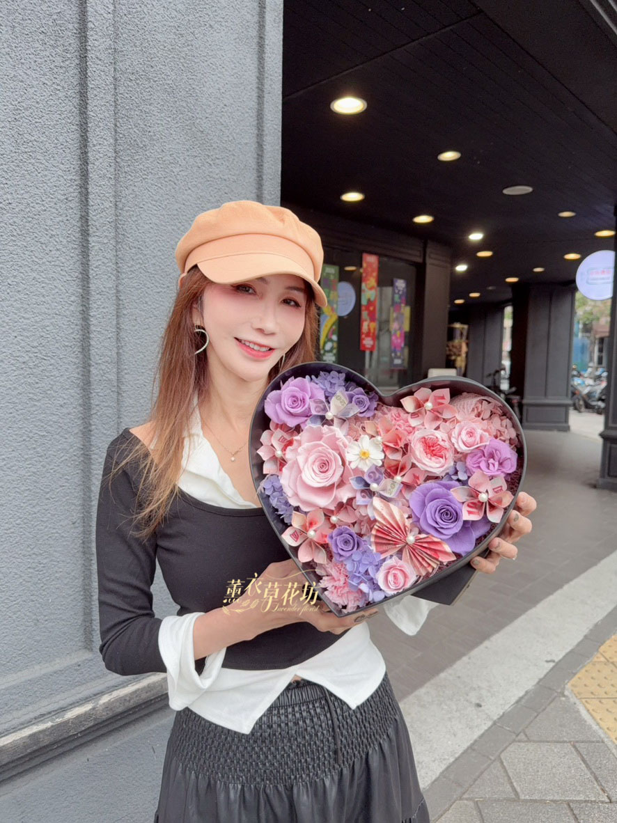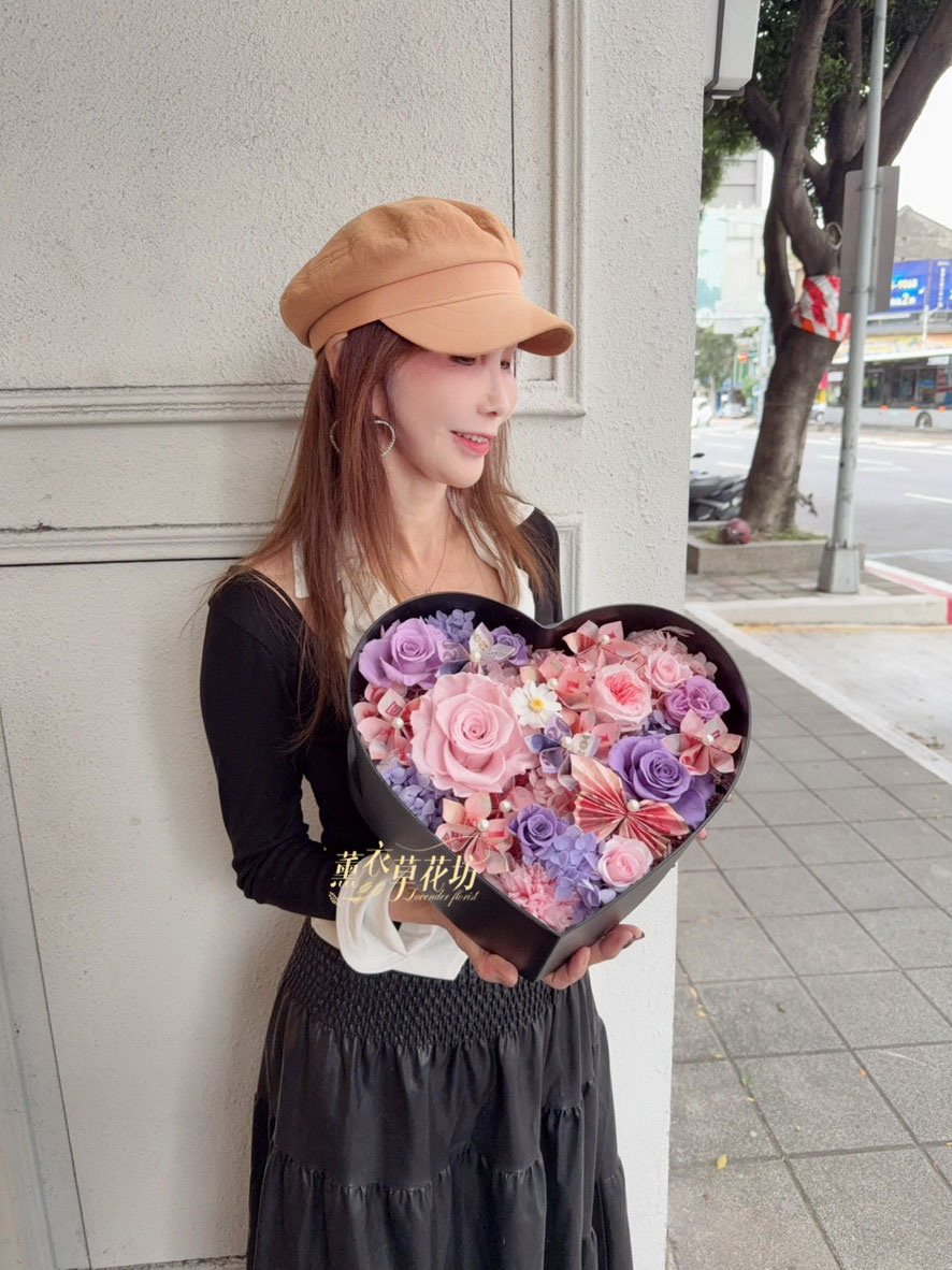 【品名】愛心~永生花~花盒(內涵現金5000)